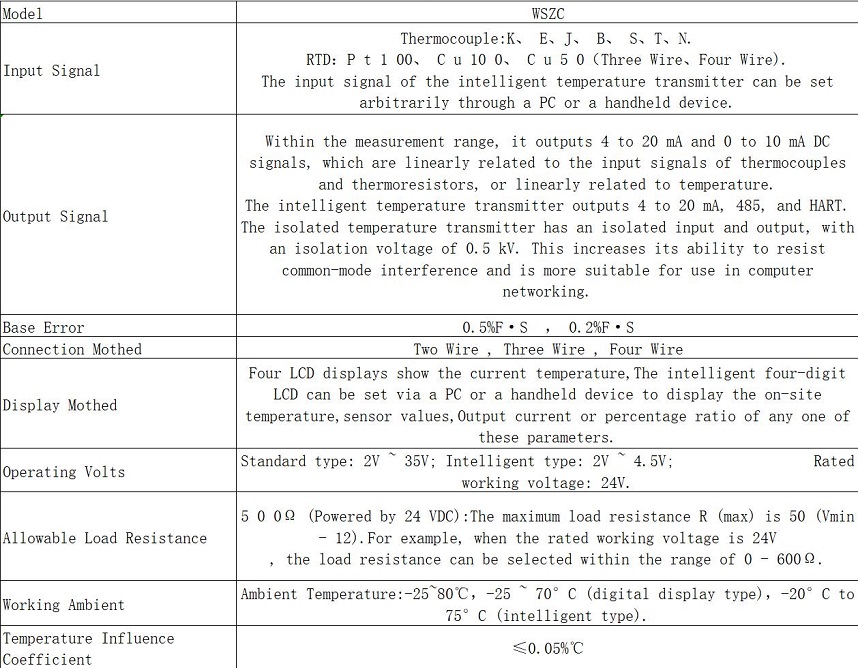 Integratul emițător de temperatură este compus dintr -un modul traductor de temperatură și termocuple industriale sau termolescente. Adoptează metode de transmisie cu două fire, cu trei fire și cu patru fire. Transformă semnalele de termocuple și rezistență industriale în semnale de ieșire liniare de 4-20mA sau 0-10mA. Acest emițător poate fi instalat direct în cutia de joncțiune a termocouplelor sau termolescerilor pentru a forma o structură integrată. Ca o nouă generație de instrument de măsurare a temperaturii, acesta poate fi aplicat pe scară largă în sectoare industriale, cum ar fi metalurgia, petrolul, industria chimică, puterea, industria ușoară, textilele, alimentația, apărarea națională și cercetarea științifică.