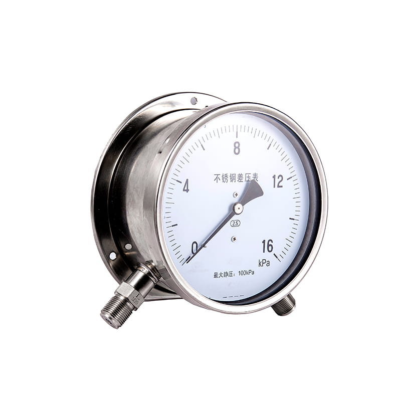 Instrumentul adoptă o structură dublă a tubului Bourdon, adică două tuburi Bourdon sunt instalate în poziții simetrice pe ambele părți ale suportului „I”. Secțiunile superioare și inferioare ale suportului „I” sunt capătul mobil, respectiv capătul fix, iar mijlocul este conectat printr -o piesă de arc: cele două tuburi Bourdon sunt într -o stare paralelă și sunt conectate cu îmbinările de înaltă tensiune și de joasă tensiune de pe carcasă cu conducta, respectiv: mecanismul de transmisie de viteză este instalat direct la capătul fix al rodului de tragere: și este conectat direct la sfârșitul mobilului de la capătul fixat prin capătul fixat: și este conectat direct cu sfârșitul motor al brațului fixat prin capătul fixat: și este conectat direct la sfârșitul mișcării Mecanism de transmisie a vitezei.