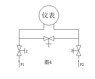 4. Așa cum se arată în figura 4 , supapa de echilibru (siguranță) (supapă 1 ) ar trebui să fie așezată în fața porturilor de intrare de înaltă și joasă ale instrumentului în timpul instalării și ar trebui să fie în poziția deschisă, iar supapa de echilibru ar trebui să fie închisă după supapă 2 şi Supapă 3 toate sunt deschise.