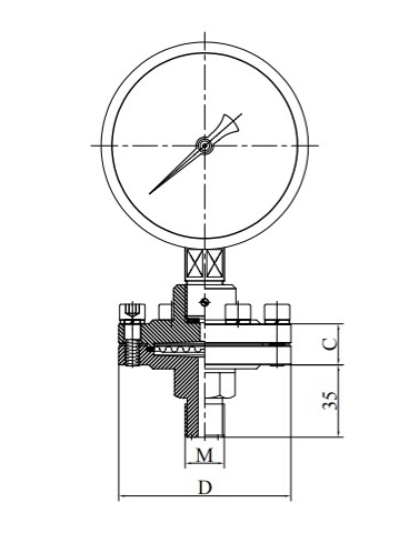 Acest instrument este măsurarea indirectă. Deformarea diafragmei de izolare sub presiunea mediului măsurat, lichidul de etanșare este presurizat, iar presiunea este transmisă la presiune.