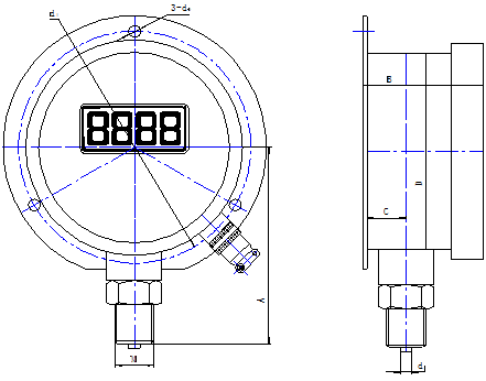 | Cadran analogic | ★ Indicația procentuală a presiunii: indicatorul afișează procentul din intervalul măsurării presiunii sub forma unui ventilator ★ Indicația fluctuației presiunii: leagănul unui indicator indică cât fluctuează măsurarea presiunii secundare adiacente ★ Indicația pragului de presiune a alarmei de presiune: Aranjamentul a trei indicatoare este utilizat pentru a arăta dacă valoarea curentă a presiunii depășește pragul de alarmă | |||||